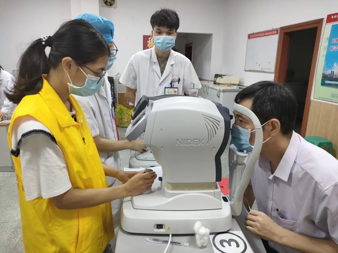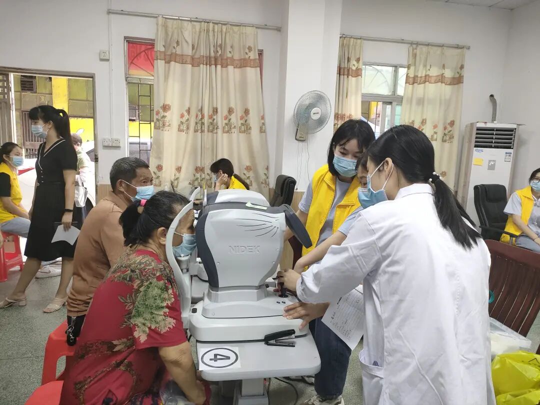 在活動中,惠州三院眼科醫(yī)護人員為居民進行了較為全面的眼科檢查,項目涵蓋視力測量、眼壓測量、屈光度測量、眼底照相檢查、裂隙燈檢查以及眼健康相關(guān)問卷,受到了當(dāng)?shù)鼐用竦囊恢潞迷u!下面我們通過一組照片,感受一下現(xiàn)場的氛圍吧……