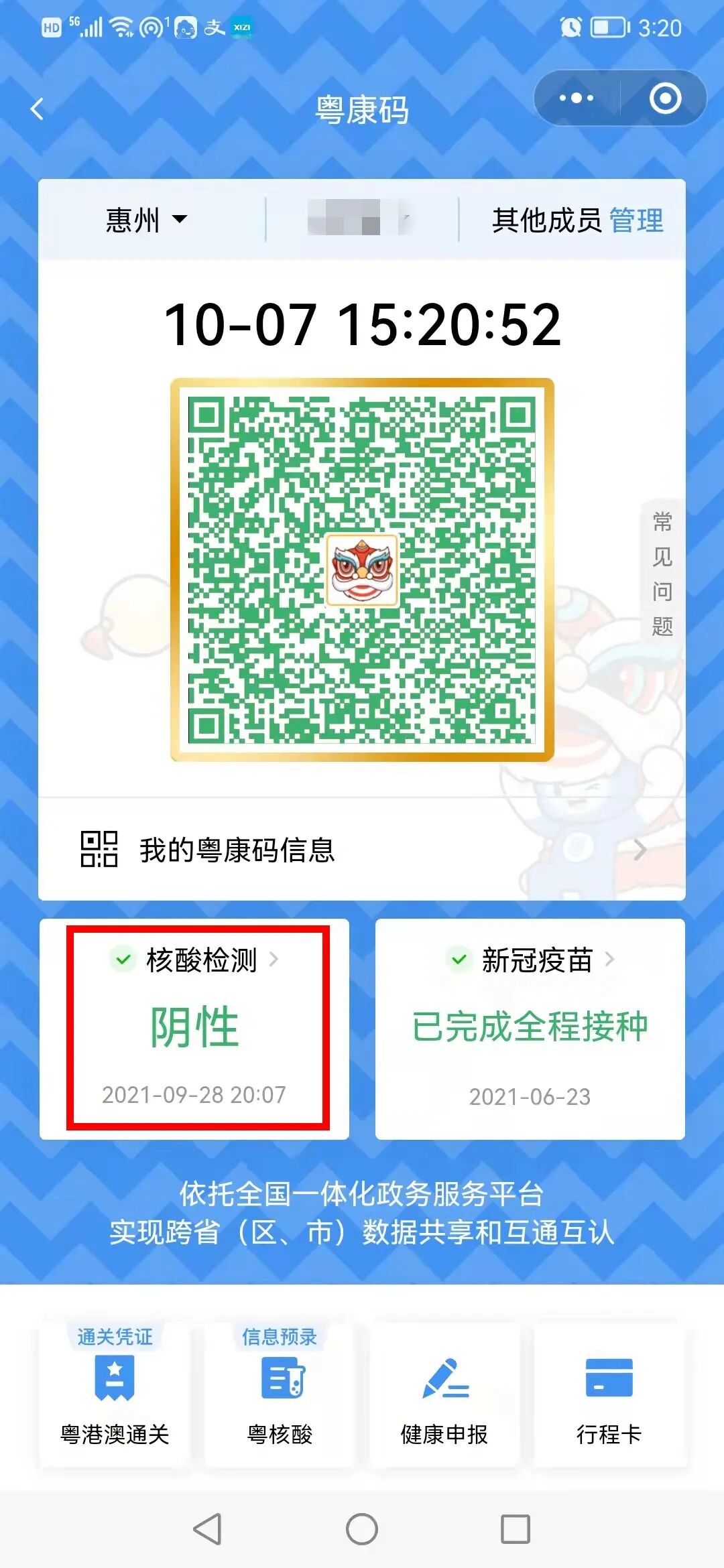 通過(guò)粵康碼可查詢核酸檢測(cè)結(jié)果