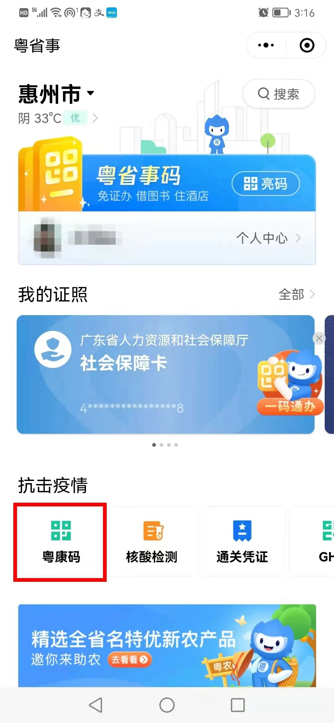 打開(kāi)“粵省事”小程序,選擇“粵康碼”登錄