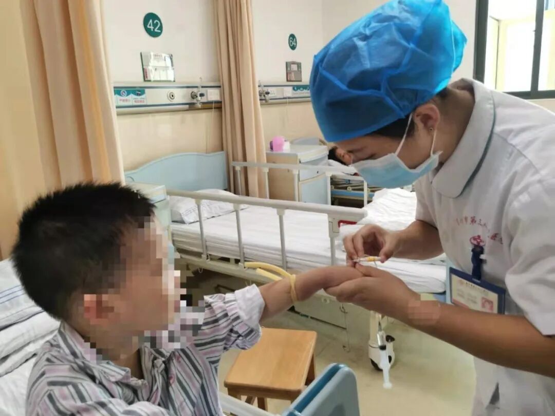 護(hù)士為即將手術(shù)的小患者打術(shù)前針