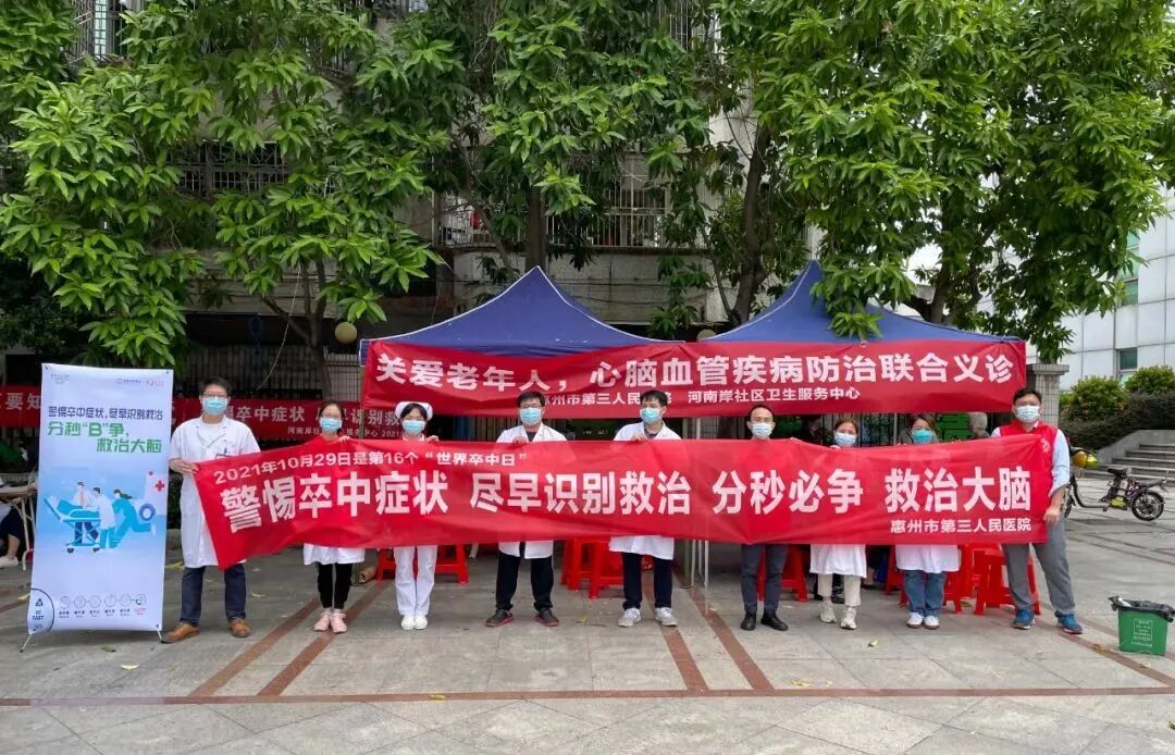 惠州三院是國(guó)家“高級(jí)卒中中心單位”,醫(yī)院卒中中心紅手環(huán)志愿服務(wù)團(tuán)每年都積極深入鄉(xiāng)村、社區(qū)等,開(kāi)展各種形式的義診宣教活動(dòng),普及腦卒中防治知識(shí),讓更多人了解卒中、有效預(yù)防卒中、及時(shí)治療卒中,為提高人們的健康意識(shí)和防病治病的能力而不懈努力!