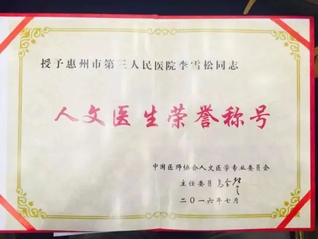 惠州市第三人民醫(yī)院李雪松博士被授予“人文醫(yī)生”榮譽(yù)稱號,為惠州首位全國人文醫(yī)生。這也是對三院多年開展人文醫(yī)學(xué)建設(shè)工作的充分肯定和激勵。