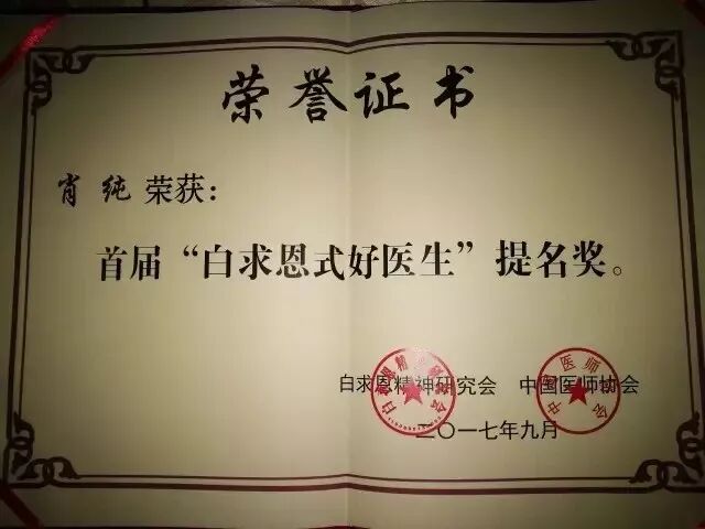 肖純博士榮獲“白求恩式好醫(yī)生”提名獎