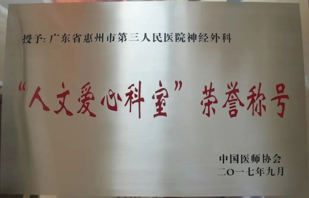 惠州市第三人民醫(yī)院神經(jīng)外科獲評全國“人文愛心科室”;肖純博士榮獲首屆“白求恩式好醫(yī)生”提名獎!