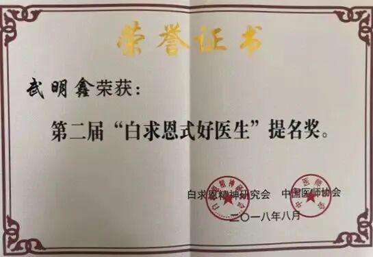 武明鑫博士榮獲“白求恩式好醫(yī)生”提名獎