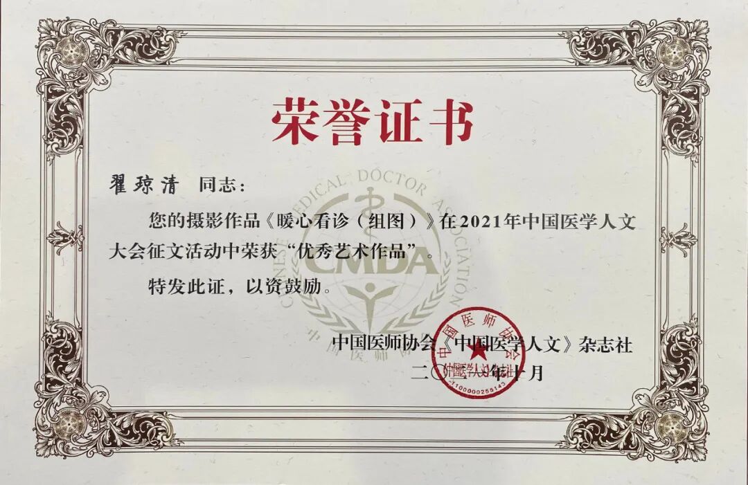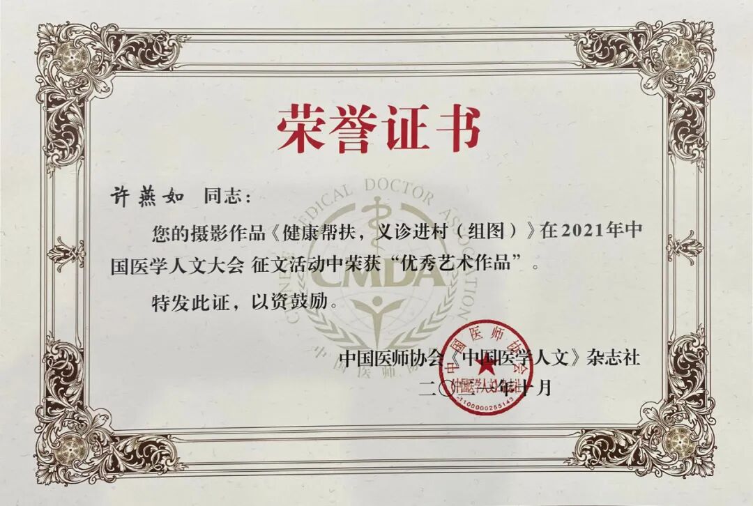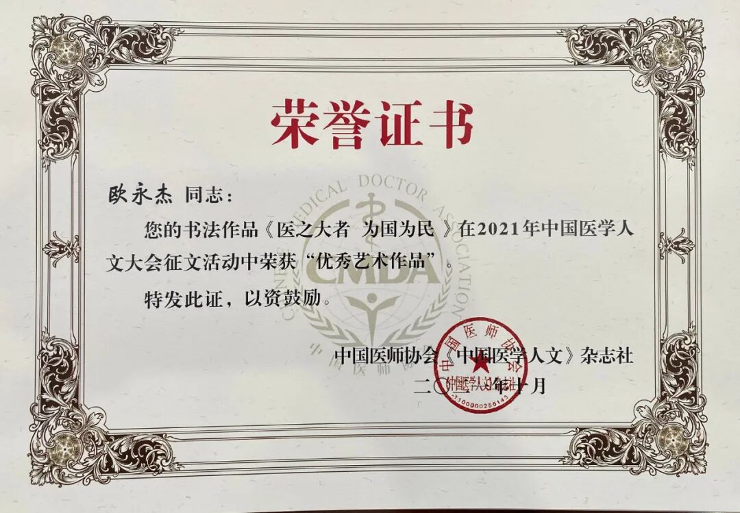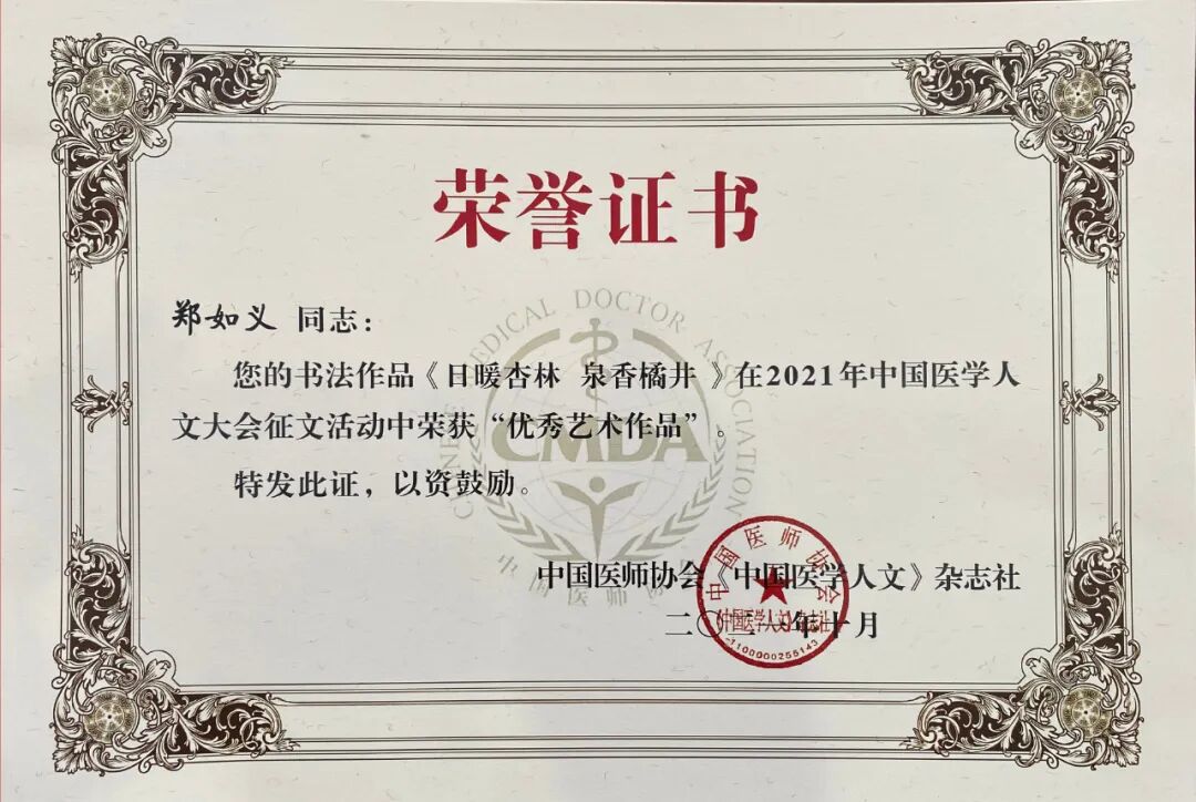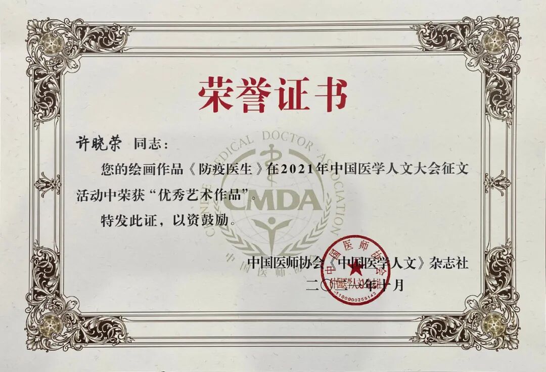 惠州市第三人民醫(yī)院高度重視醫(yī)學(xué)人文建設(shè)工作,醫(yī)院領(lǐng)導(dǎo)親自帶隊,連續(xù)五年出席中國醫(yī)學(xué)人文大會。今年,惠州三院黨委專職副書記楊燕媚帶領(lǐng)服務(wù)管理中心、宣傳辦代表參加本次大會,并捧回多個獎項!其中:有3篇論文被評為優(yōu)秀論文并入選“慶祝2021年中國醫(yī)師節(jié)暨中國醫(yī)學(xué)人文大會優(yōu)秀論文集”;5組攝影作品被評為“優(yōu)秀作品”;有6幅書法、繪畫作品為評為“優(yōu)秀作品”。