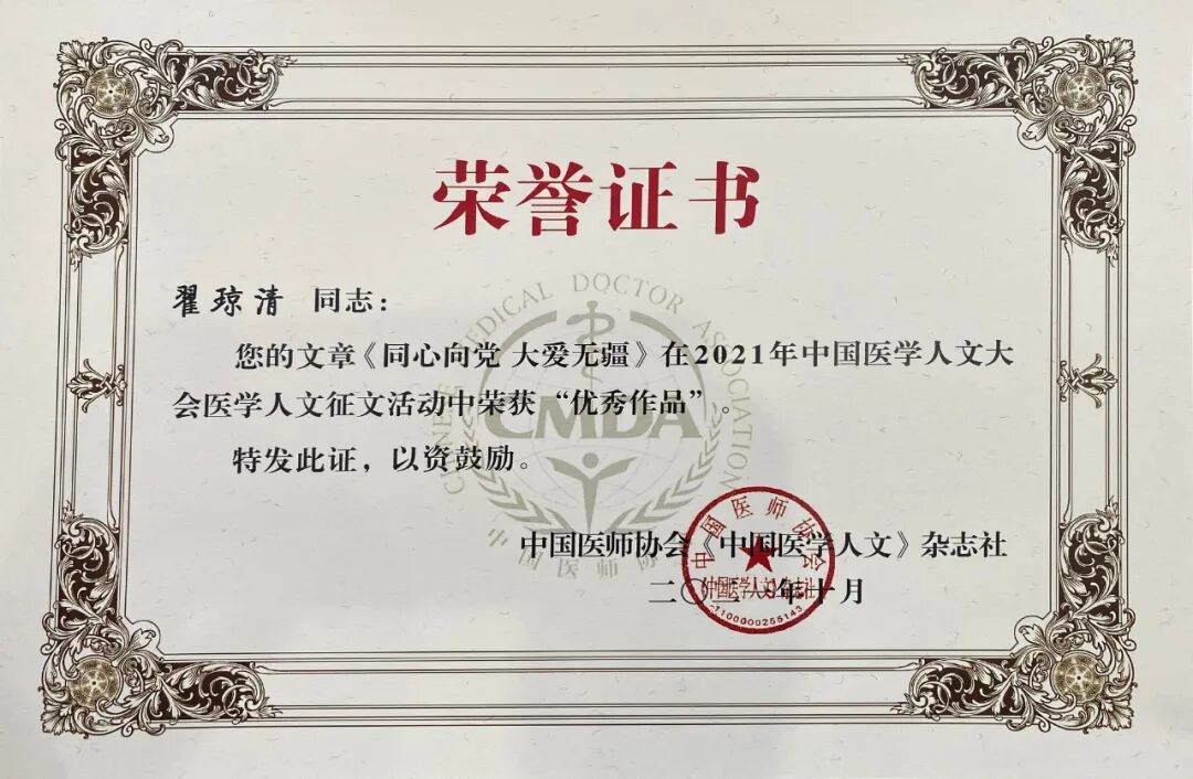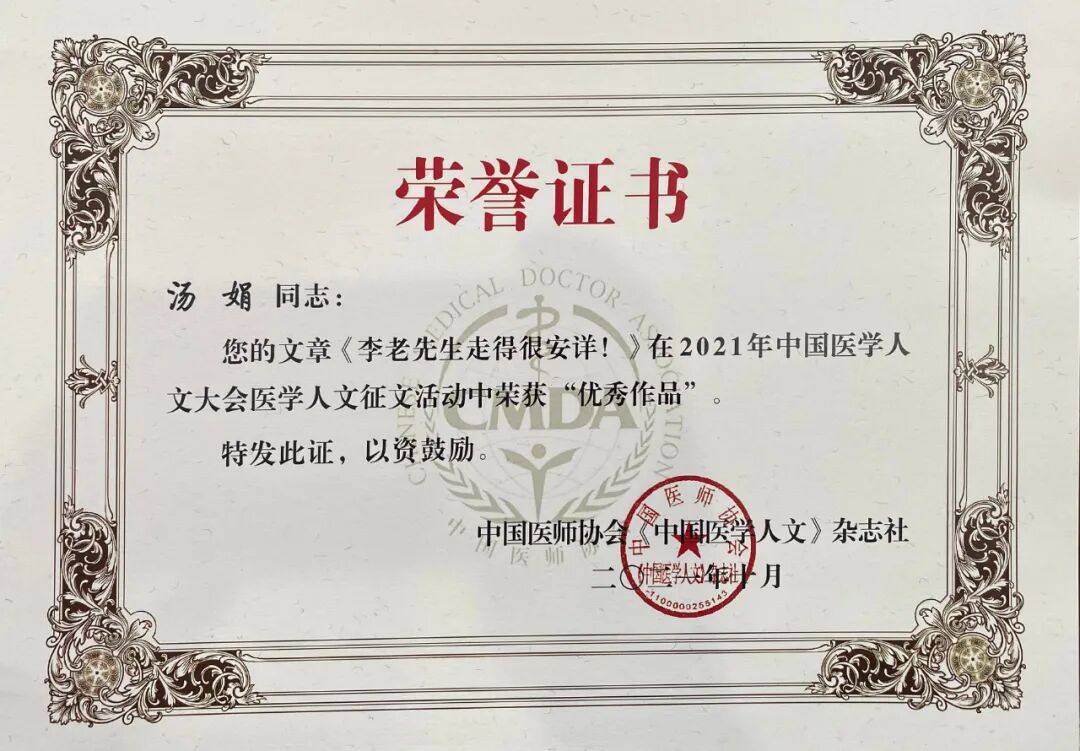 2021年10月17日,惠州市第三人民醫(yī)院獲評第五屆中國醫(yī)學(xué)人文大會優(yōu)秀論文及優(yōu)秀作品如下: