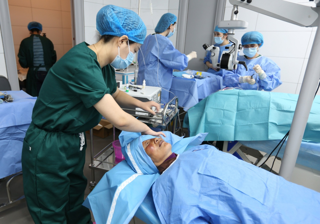 ▲為了保證手術(shù)效果,即使高原診室的氣溫較低,惠州三院眼科專家們也只穿短袖工作服展開工作。