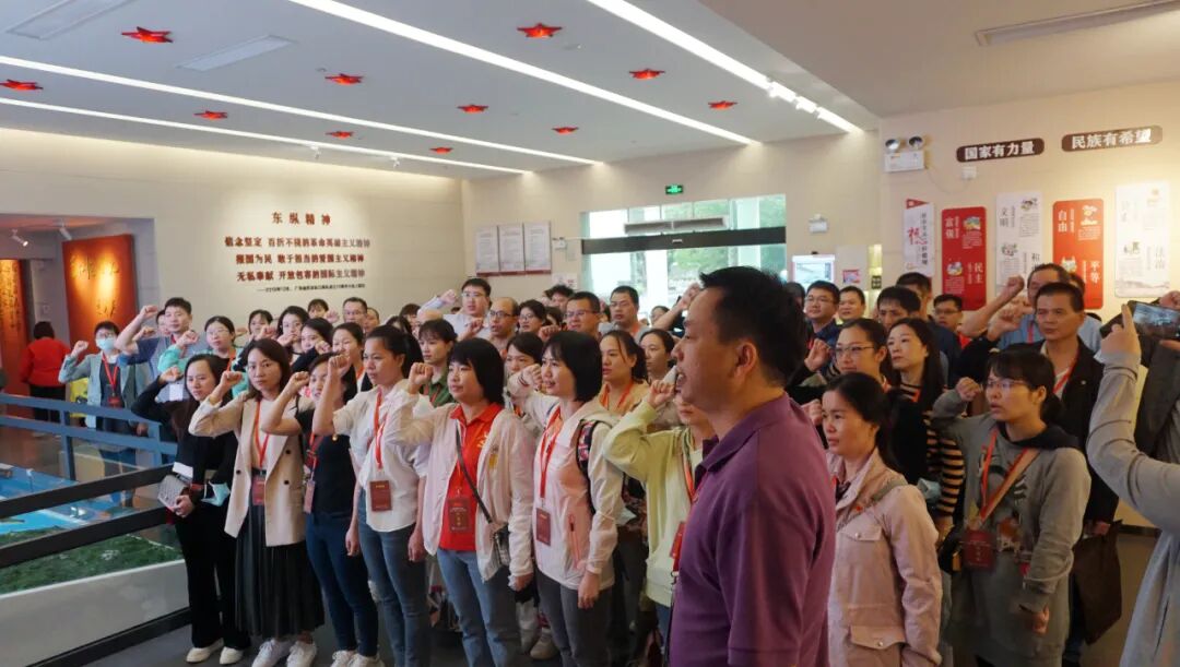 參觀隊(duì)伍抵達(dá)后,首先在紀(jì)念館廣場的黨旗前舉行了重溫入黨誓詞活動(dòng),勉勵(lì)黨員不忘入黨初心,牢記入黨誓言,專心鉆研醫(yī)術(shù),為人民健康保駕護(hù)航。