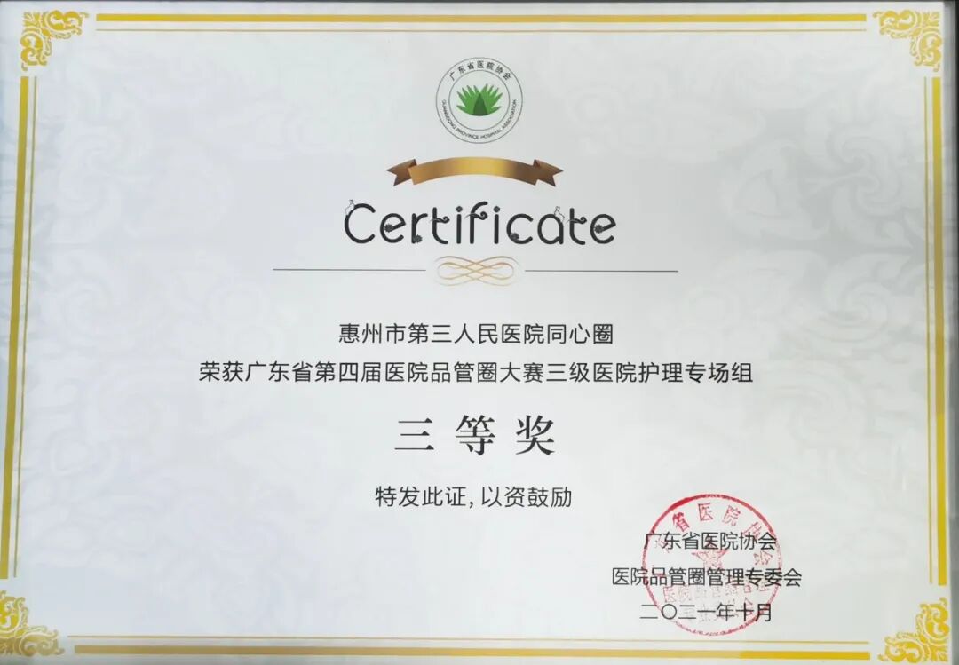 2021年10月30日-31日,廣東省第四屆醫(yī)院品管圈大賽在廣州隆重舉行。本次大賽由廣東省醫(yī)院協(xié)會品管圈管理專業(yè)委員會主辦,是一場規(guī)模盛大、水準(zhǔn)極高的競技大賽!惠州市第三人民醫(yī)院代表隊在該項大賽中再獲佳績!
