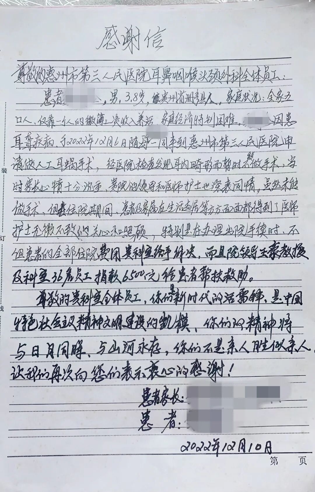 奇奇出院返鄉(xiāng)當(dāng)日,已經(jīng)連續(xù)八年參與惠州市耳聰工程拍攝的中國(guó)新聞社高級(jí)記者任晨鳴先生在了解了孩子的情況后同情不已,也當(dāng)場(chǎng)私人捐贈(zèng)了1000元給奇奇家。