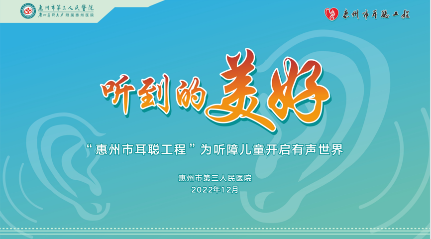 “惠州市耳聰工程”是惠州市第三人民醫(yī)院于2015年發(fā)起的針對(duì)家庭經(jīng)濟(jì)困難的聽障兒童和耳疾患者進(jìn)行醫(yī)療救助的特色公益項(xiàng)目,旨在幫助聽障兒童和耳疾患者重建聽力、解除病痛,共享有聲世界,重拾生活信心,減少因耳疾所致的家庭及社會(huì)問題,并引起全社會(huì)對(duì)聽力障礙人士的關(guān)注和幫助。
