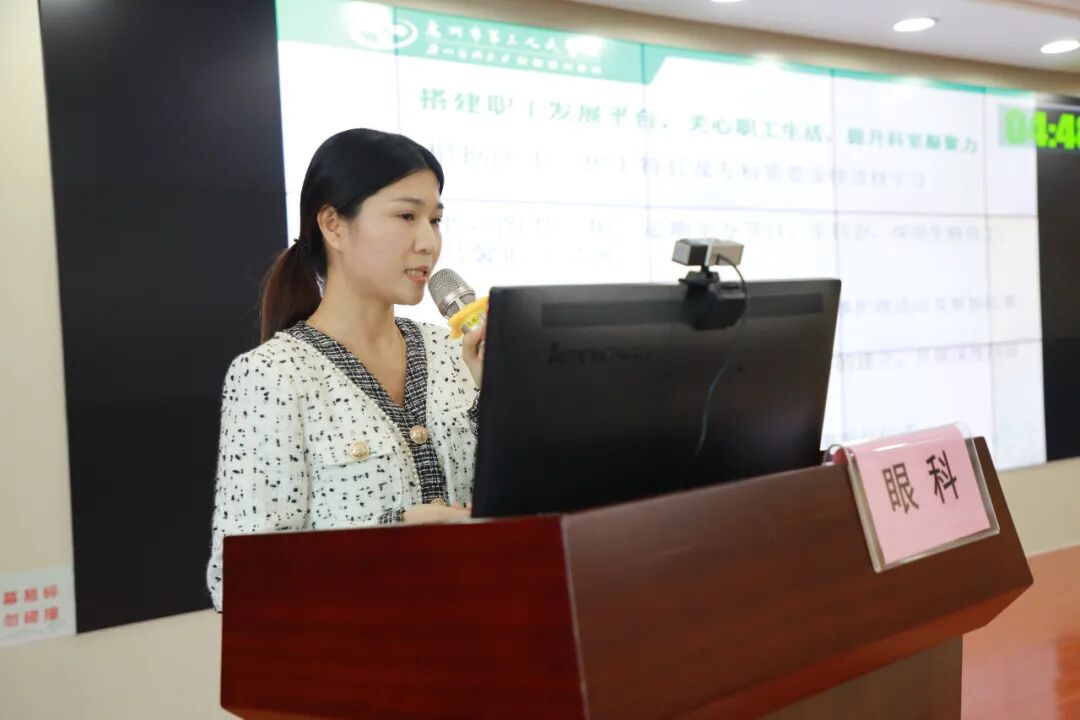 參評科室代表分別從人文愛心科室創(chuàng)建背景、過程、效果及創(chuàng)新性等方面充分展現(xiàn)了各科室卓越的人文管理、溫馨的人文環(huán)境、暖心的人文關(guān)懷和優(yōu)質(zhì)的人文服務(wù),內(nèi)容詳實豐富,匯報生動感人,得到了各位評委的一致好評。