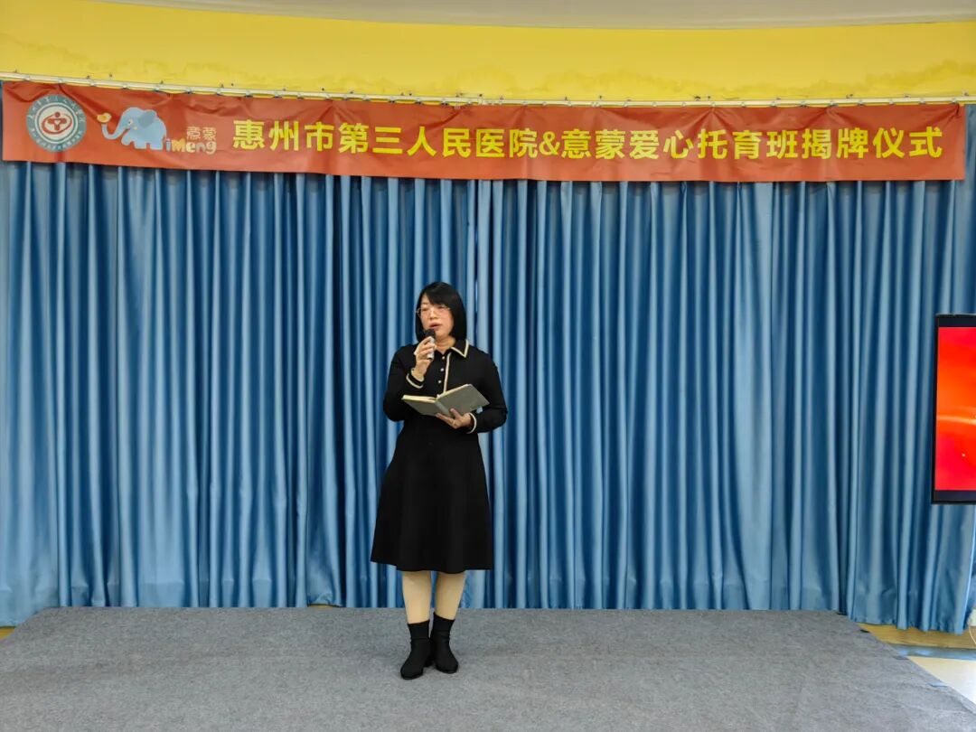 惠州三院黨委委員、工會主席李瑞林指出,在上級工會、主管局、托育協(xié)會和相關(guān)部門的大力支持和幫助下,惠州三院先行先試,按照“安全、便利、規(guī)范、品質(zhì)、創(chuàng)新”的建園原則,經(jīng)過公開招標(biāo)最終與意蒙簽定了舉辦工會愛心托育園的合作協(xié)議,這標(biāo)志著惠州三院愛心托育工作率先在我市邁上了實質(zhì)性推進(jìn)的步伐。今天的揭牌儀式,標(biāo)志著雙方合作朝著更加規(guī)范、更加親密、更加深入、更加全面、更加人文的目標(biāo)邁進(jìn),向著示范單位、標(biāo)桿模式、創(chuàng)新典型的目標(biāo)邁進(jìn)!希望以合作舉辦工會愛心托育為契機,雙方依托各自的優(yōu)勢,進(jìn)一步深化“醫(yī)”、“育”合作,探索更多互利共贏的舉措,不斷提升惠州三院和意蒙的品牌,惠及更多的孩子和家庭,惠及更多惠州三院職工,讓職工可以安心投入到為人民的生命健康安全保駕護(hù)航工作中。