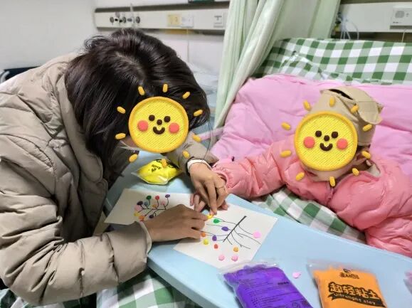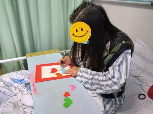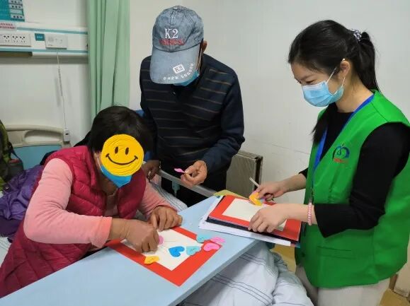 醫(yī)務(wù)社工通過在患者床邊開展粘土、卡片DIY制作等舒緩解壓活動,以達到緩解患者和家屬因長期住院而壓抑的情緒,增加患者與家屬之間在治療生活外的交流與互動,為枯燥的住院生活增添一絲樂趣!