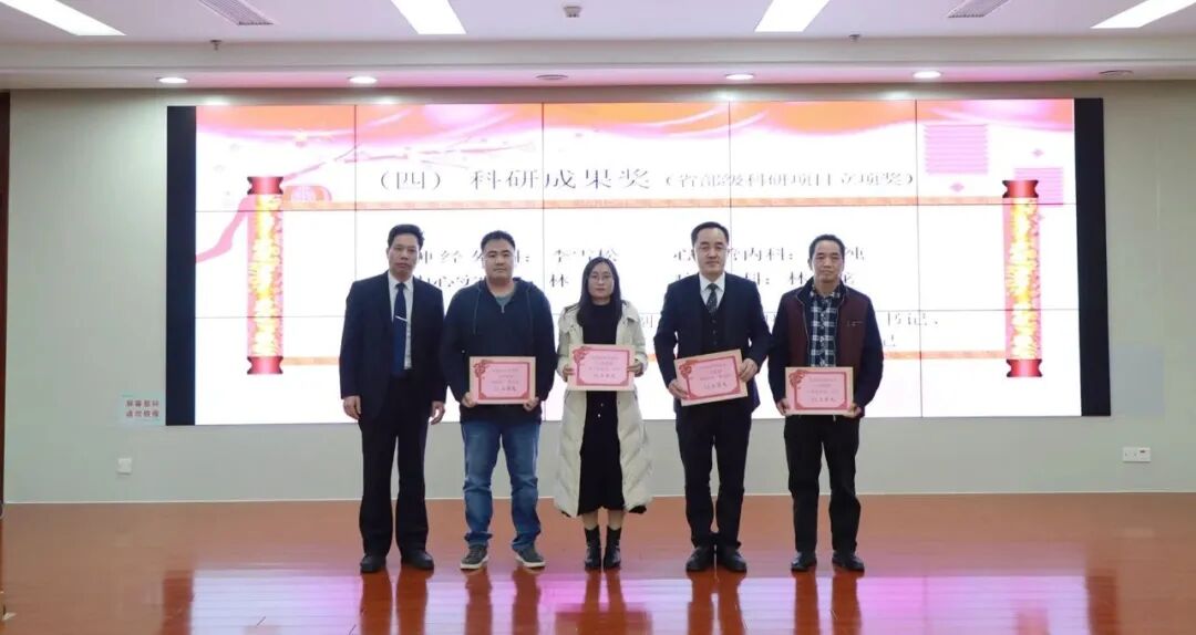 神經(jīng)外科李雪松、心血管內(nèi)科肖純、中心實驗室林麗、病理科林小龍榮獲“科研成果獎(省部級科研項目立項獎)”。