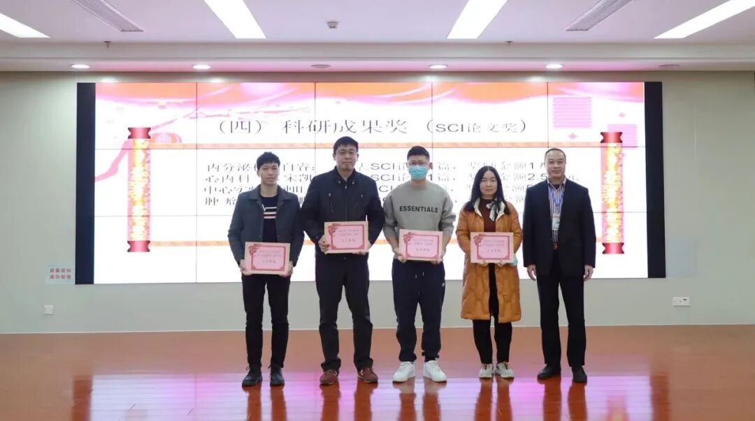 腫瘤科歐陽鵬、中心實驗室鐘曉景、心內(nèi)科一區(qū)宋凱、內(nèi)分泌科蒿自睿榮獲“科研成果獎(SCI論文獎)”。