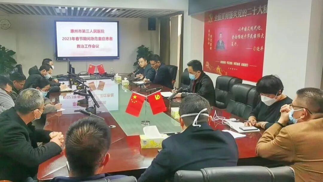 為切實做好醫(yī)院醫(yī)療救治保障工作,尤其是在春節(jié)期間,重點保障急危重癥患者救治和公共衛(wèi)生事件應(yīng)急,2023年1月21日除夕當(dāng)天,惠州市第三人民醫(yī)院院長李雪松組織醫(yī)務(wù)部、院感部及醫(yī)院各重癥科室主任召開了春節(jié)期間急危重癥患者救治工作會議,結(jié)合當(dāng)前形勢,及時研判,動態(tài)調(diào)整工作重心,進行工作再部署。