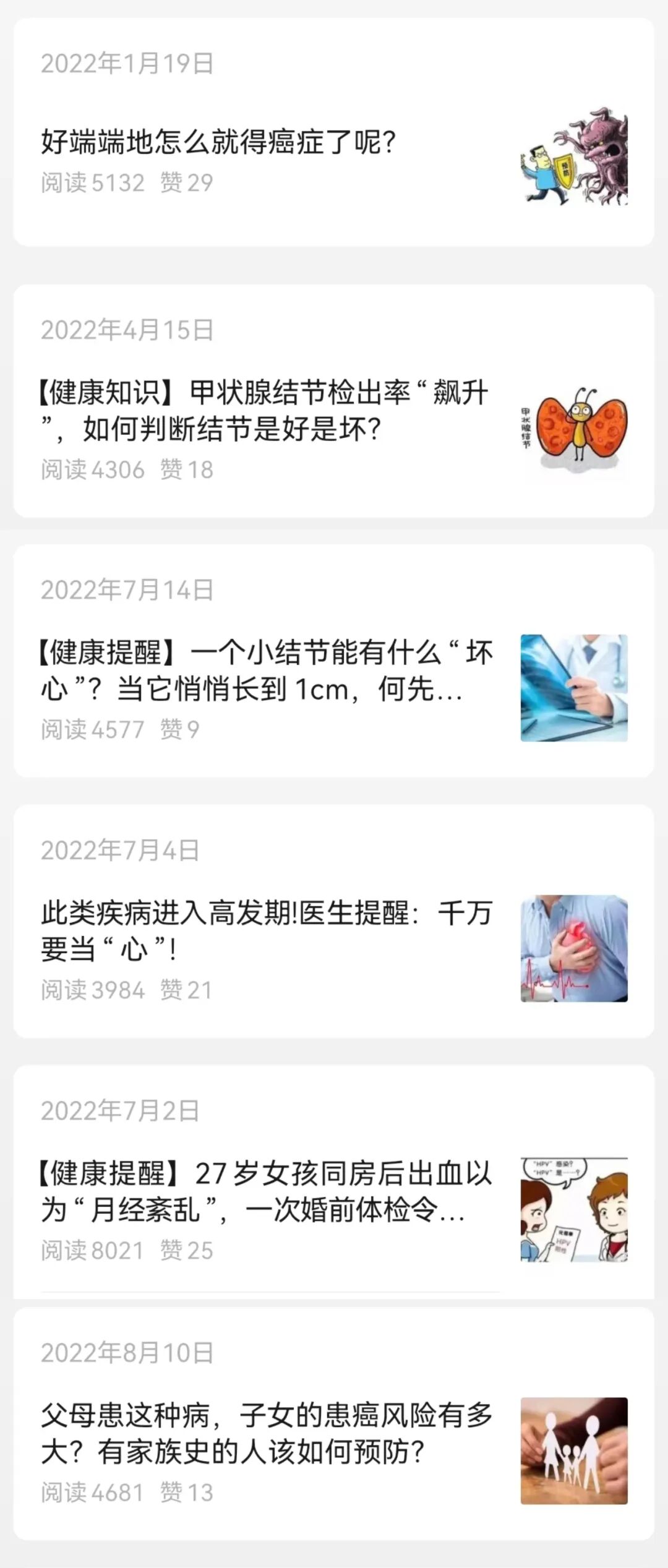 長期以來,健康管理中心不斷完善信息化服務(wù),堅(jiān)持不懈運(yùn)用自媒體平臺(tái)(微信公眾號(hào)和視頻號(hào))開展健康科普宣傳,積極通過網(wǎng)絡(luò)向廣大市民普及預(yù)防保健、健康生活指導(dǎo)等醫(yī)學(xué)健康知識(shí),不斷提高社會(huì)公眾的健康素養(yǎng)。
