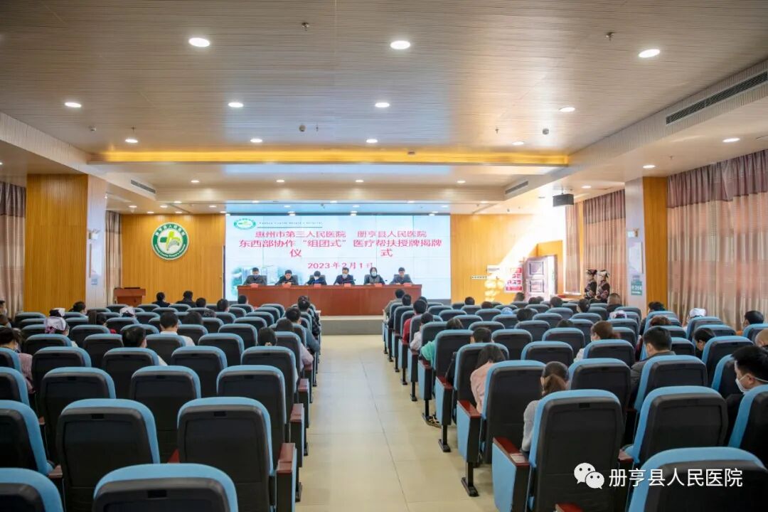 當(dāng)日下午,李雪松院長(zhǎng)一行出席在該院住院樓十三樓會(huì)議室舉行的惠州市第三人民醫(yī)院與冊(cè)亨縣人民醫(yī)院東西部協(xié)作“組團(tuán)式”醫(yī)療幫扶授牌揭牌簽約儀式。