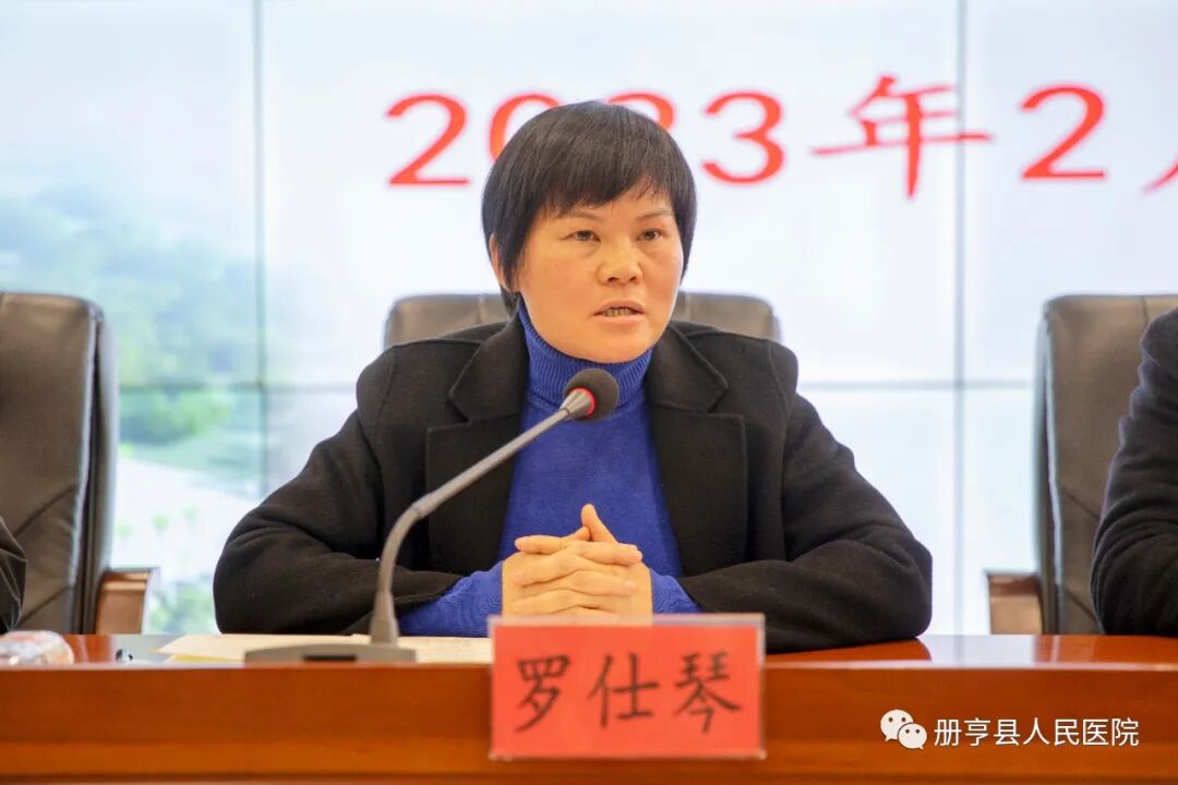 冊(cè)亨縣人大副主任羅仕琴在講話中要求,冊(cè)亨縣人民醫(yī)院一要提高政治意識(shí),堅(jiān)持黨建引領(lǐng),全面深入學(xué)習(xí)黨的二十大精神和習(xí)近平總書記在醫(yī)療衛(wèi)生健康領(lǐng)域的重要講話精神,深刻領(lǐng)悟其精髓,將其融入到工作中;二要發(fā)揚(yáng)斗爭(zhēng)精神,迎接新的挑戰(zhàn),全面貫徹落實(shí)黨中央、省委、州委和縣委縣政府在“組團(tuán)式”醫(yī)療幫扶項(xiàng)目上的具體要求,圍繞各項(xiàng)考核指標(biāo)開展好工作,在新的挑戰(zhàn)面前,要做好較長(zhǎng)時(shí)間應(yīng)對(duì)外部環(huán)境變化的思想準(zhǔn)備和工作準(zhǔn)備,嚴(yán)格思想淬煉、政治歷練、實(shí)踐鍛煉,不斷提高應(yīng)對(duì)風(fēng)險(xiǎn)挑戰(zhàn)的能力,保持政治定力,要答好“新階段”的試卷;三要不斷強(qiáng)化事業(yè)心、責(zé)任感,自覺強(qiáng)化憂患意識(shí)、危機(jī)意識(shí)、使命意識(shí),做到心向任務(wù)聚焦、工作向任務(wù)用力,把各項(xiàng)工作做真、做深、做實(shí)。