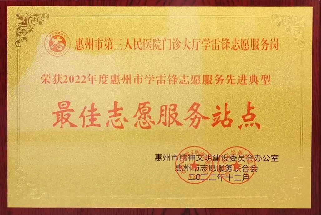 日前,惠州市文明辦、市志愿服務(wù)聯(lián)合會(huì)在全市開展2022年度惠州市學(xué)雷鋒志愿服務(wù)先進(jìn)典型評(píng)選,惠州市第三人民醫(yī)院門診大廳學(xué)雷鋒志愿服務(wù)崗獲評(píng)2022年度惠州市學(xué)雷鋒志愿服務(wù)先進(jìn)典型“最佳志愿服務(wù)站點(diǎn)”稱號(hào),黃進(jìn)團(tuán)同志榮獲“惠州市最美志愿者”。