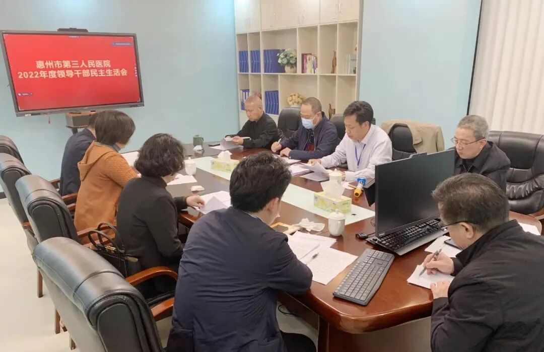 2023年2月6日,惠州市第三人民醫(yī)院黨委召開了2022年度黨員領(lǐng)導(dǎo)干部民主生活會。會議圍繞主題,緊密結(jié)合醫(yī)院工作實際,深入進行對照檢查,嚴肅開展黨性分析,認真開展批評和自我批評?;莩菂^(qū)政協(xié)副主席,區(qū)衛(wèi)健局黨組書記、局長,惠州三院黨委書記鄒忠平主持并講話,醫(yī)院黨政班子成員參加會議。