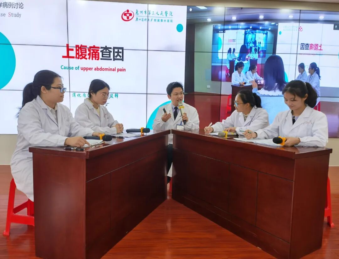 消化內(nèi)科鐘俊鋒副主任醫(yī)師進(jìn)行了教學(xué)病例討論現(xiàn)場演示,采用分段式依次拋出討論問題,指導(dǎo)實(shí)習(xí)同學(xué)從匯報(bào)病史,歸納病例特點(diǎn),圍繞診斷及鑒別診斷為主題,層層深入,同學(xué)們踴躍發(fā)言、相互爭論,老師間斷引導(dǎo)設(shè)問、反問、疑問解答等,培養(yǎng)醫(yī)學(xué)生的臨床思維能力。