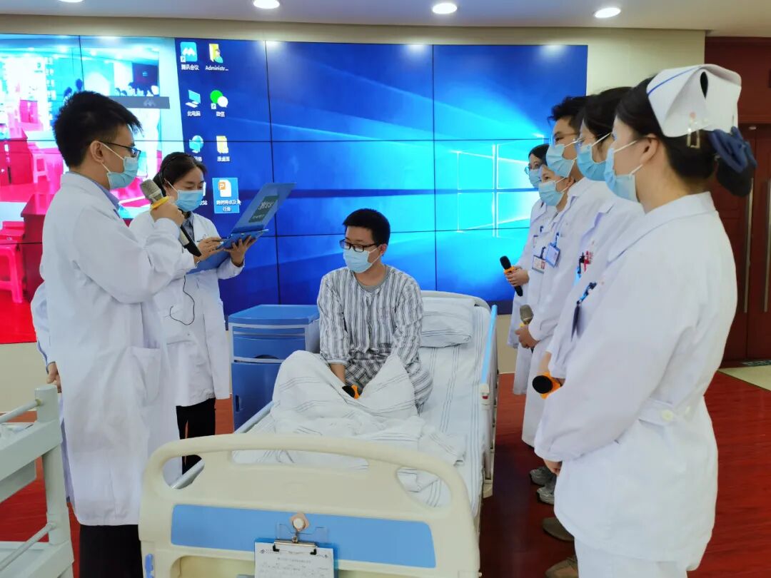 在下午的現(xiàn)場演示環(huán)節(jié),內(nèi)分泌科蒿自睿副主任醫(yī)師進(jìn)行了教學(xué)查房現(xiàn)場演示,帶領(lǐng)實(shí)習(xí)同學(xué)通過床旁匯報(bào)病史、體格檢查、臨床病例討論分析、總結(jié)歸納,全面展示教學(xué)查房的完整流程。