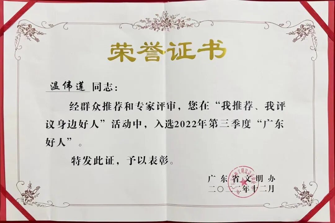 喜訊!惠州三院溫偉蓮榮獲2022年第三季度“廣東好人”稱號(hào)