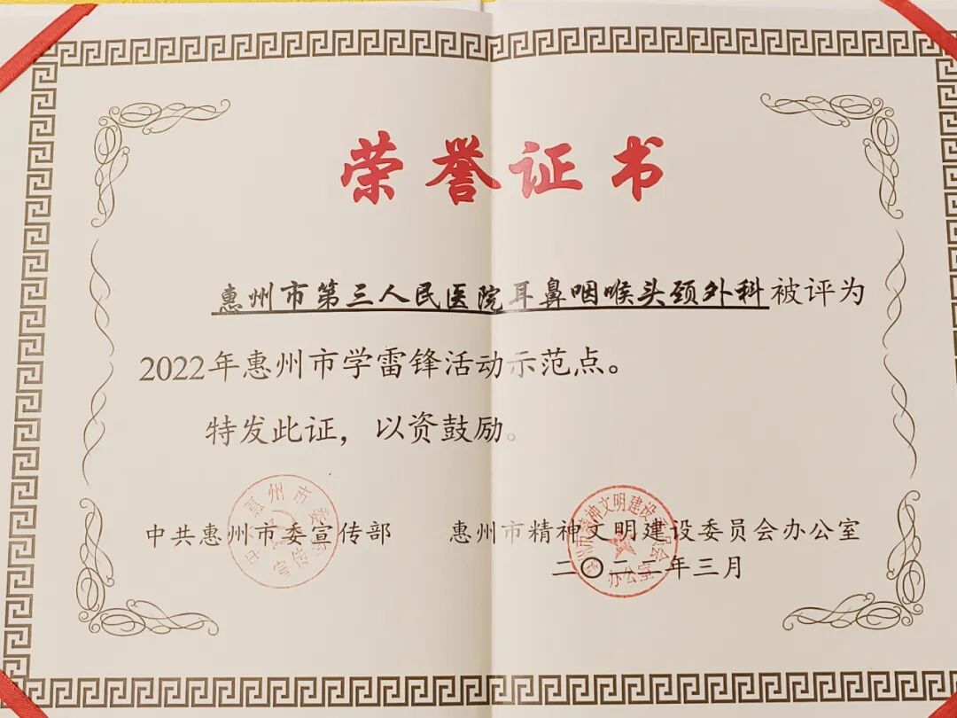 2022年惠州市學(xué)雷鋒活動(dòng)示范點(diǎn)——惠州市第三人民醫(yī)院耳鼻咽喉頭頸外科