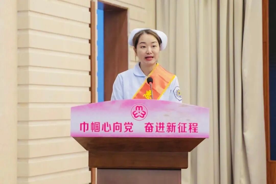 惠州市第三人民醫(yī)院急診醫(yī)學(xué)部護(hù)士溫偉蓮上臺(tái)領(lǐng)獎(jiǎng)并作為惠州市三八紅旗手代表發(fā)言。