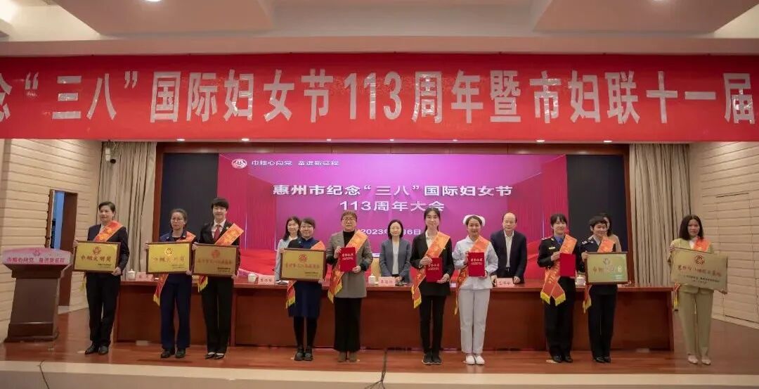 巾幗心向黨,奮進(jìn)新征程!2023年3月6日,惠州市婦聯(lián)召開紀(jì)念“三八”國際婦女節(jié)113周年暨市婦聯(lián)十一屆八次執(zhí)委會(huì)議。市政府副市長李俊玲、市政府副秘書長左順全、市婦聯(lián)領(lǐng)導(dǎo)班子、兼職副主席,各縣(區(qū))婦聯(lián)主席和執(zhí)委以及國家、省、市級(jí)先進(jìn)集體和先進(jìn)個(gè)人等80人參加會(huì)議。