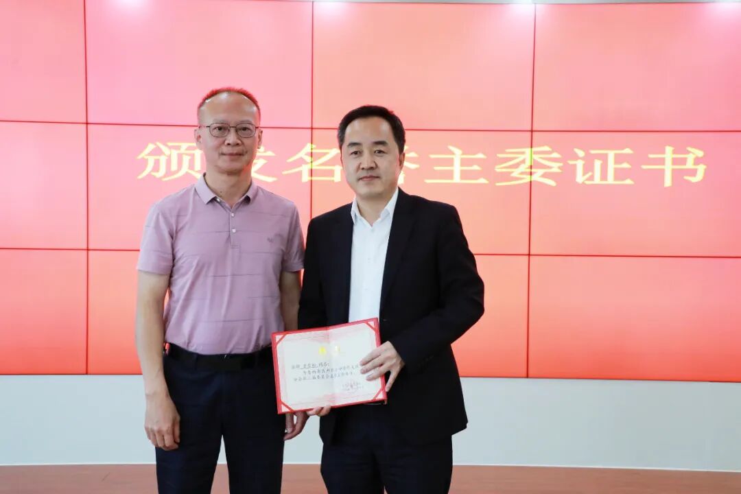 李慧誠(chéng)會(huì)長(zhǎng)(左)為當(dāng)選的名譽(yù)主任委員李雪松(右)頒發(fā)證書