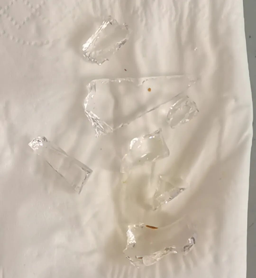 23點(diǎn)左右,患者被送往手術(shù)室在全麻下行內(nèi)鏡下消化道異物取出術(shù),好在手術(shù)順利,大部分玻璃已取出,小部分已進(jìn)入下消化道(胃鏡無(wú)法取出)或異物尖端銳利向腸管管壁嵌插的,只能通過(guò)自主排便的方式排出。