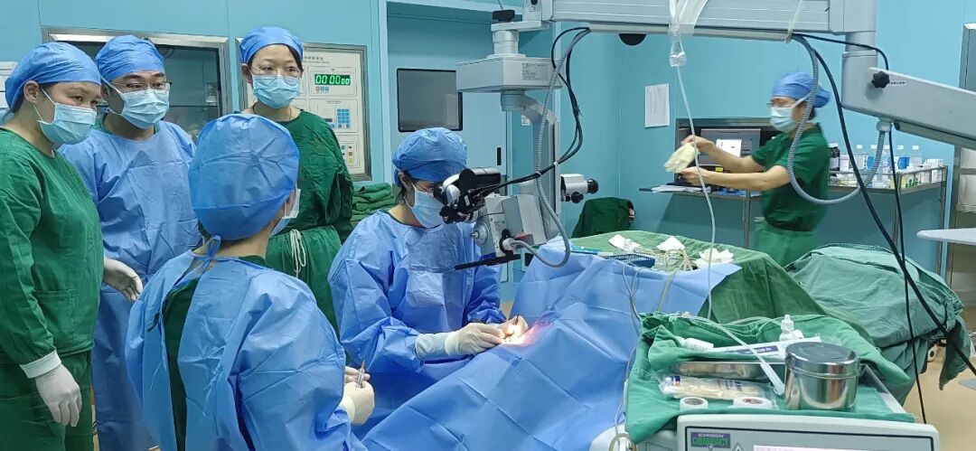 惠州三院眼科段娜副主任醫(yī)師、鄧水鳳副主任醫(yī)師、周慧蘭主治醫(yī)師為患者手術(shù)(左三圖)