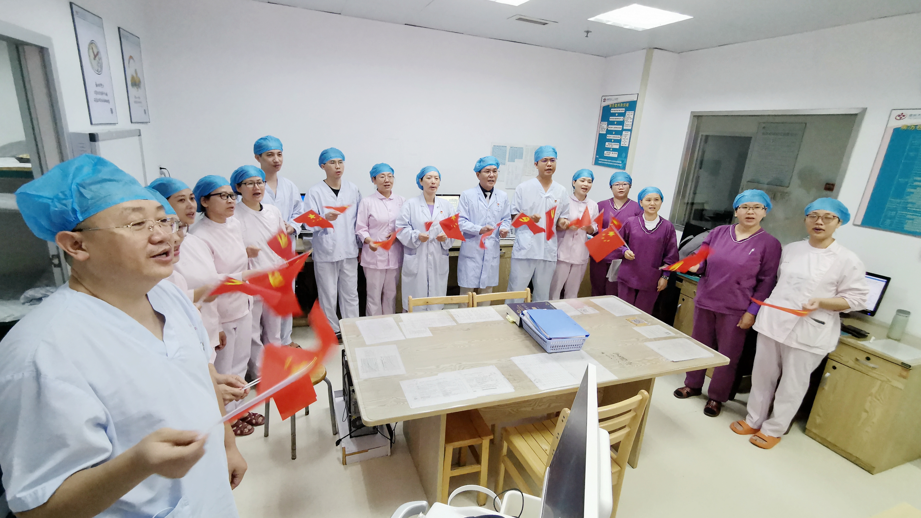 當知道要唱紅歌的時候,科室黨員韓曉暉醫(yī)生爭著第一個報名。他說這是一件非常有意義的事情,能夠讓黨歌國歌奏響心中的熱情,激發(fā)工作效率。