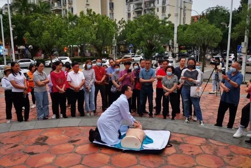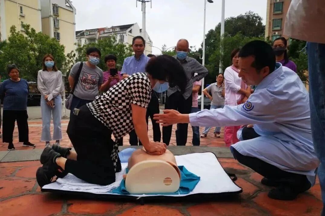 隨后,在東湖社區(qū)新時(shí)代文明實(shí)踐廣場(chǎng),惠州市第三人民醫(yī)院急診黨支部黨員同志為社區(qū)黨員、居民開展了卒中識(shí)別、胸痛急救、海姆立克急救法、心肺復(fù)蘇術(shù)等急救知識(shí)及急救技能培訓(xùn)。
