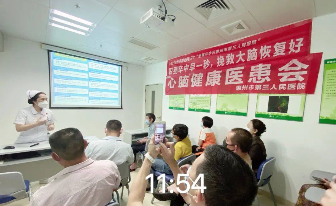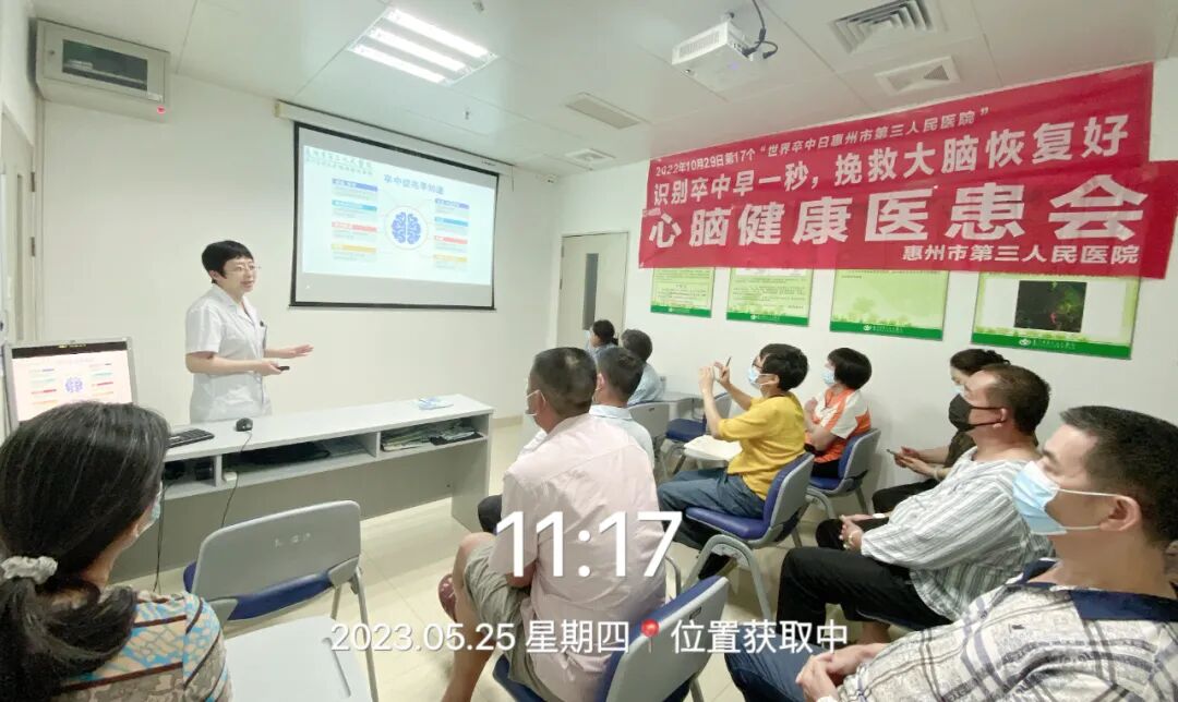 2023年5月25日是世界預防中風日,惠州市第三人民醫(yī)院神經(jīng)醫(yī)學中心神經(jīng)內(nèi)科一區(qū)在病房健康教育室,開展了卒中防治科普宣講活動,使更多患者知曉腦卒中防治知識。