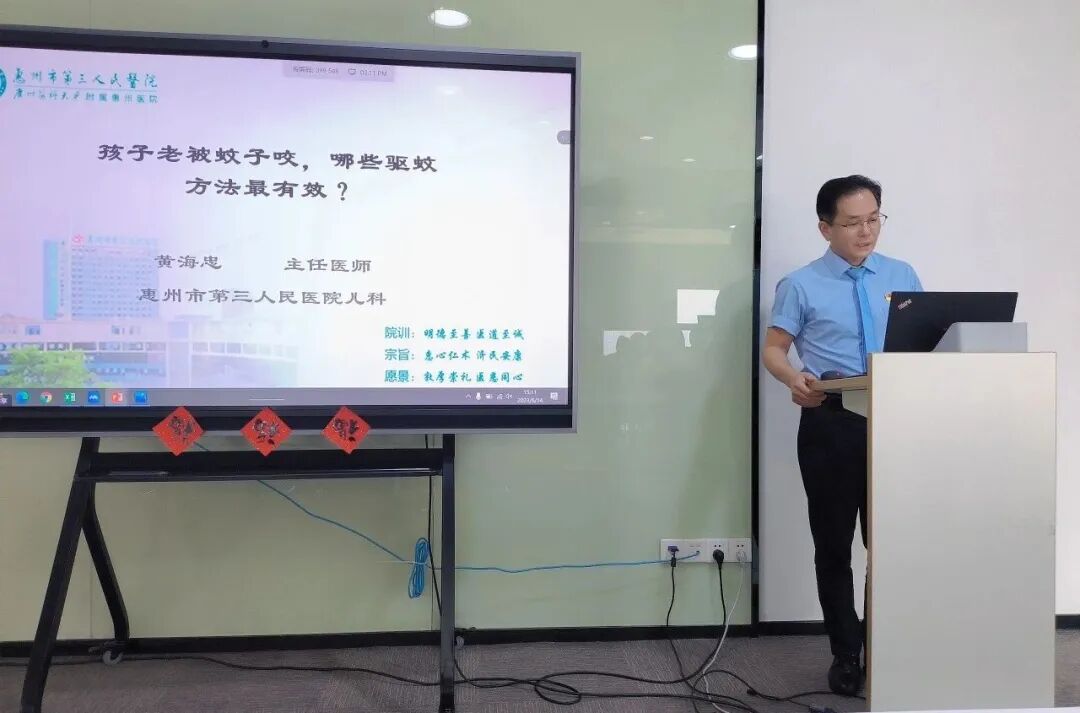 惠州三院婦兒黨支部書(shū)記、兒科大科主任黃海忠就兒童防蚊、兒童發(fā)熱及兒童咳嗽等問(wèn)題作了科普講解,通過(guò)內(nèi)容詳實(shí)的PPT課件、通俗易懂的語(yǔ)言描述,結(jié)合豐富的臨床經(jīng)驗(yàn),為現(xiàn)場(chǎng)的女職工答疑解惑。