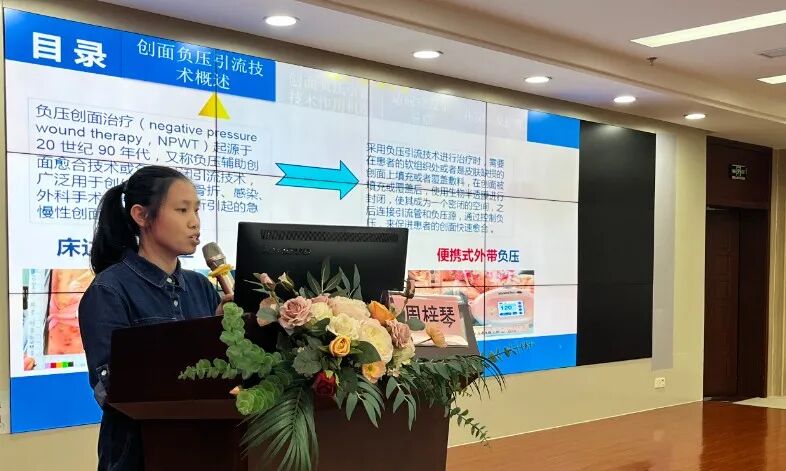惠州市第三人民醫(yī)院傷口造口??谱o(hù)士周梓琴分享《創(chuàng)面負(fù)壓引流操作技術(shù)及護(hù)理要點》,著重分享了負(fù)壓技術(shù)在創(chuàng)面的應(yīng)用。