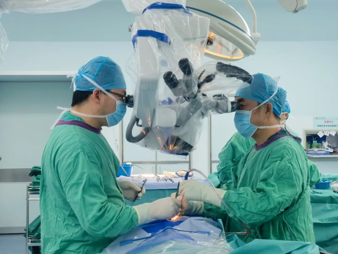 李雪松博士(右一)、胡永珍副主任醫(yī)師(左一)為患者手術(shù)