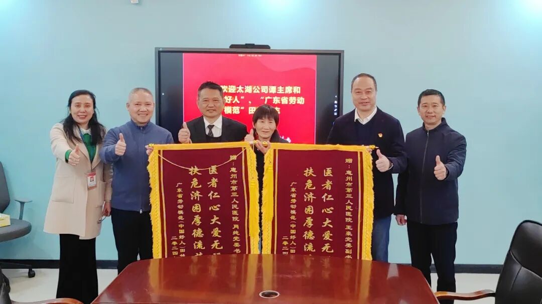 田妹勞模被惠州三院領(lǐng)導(dǎo)這種醫(yī)者仁心的行為深深感動,為表達(dá)感激之情,她通過自身所在工作單位工會聯(lián)系到了惠州三院工會,于是便有了這個“工會聯(lián)動工會,勞模感激勞?!钡呐膱雒?。