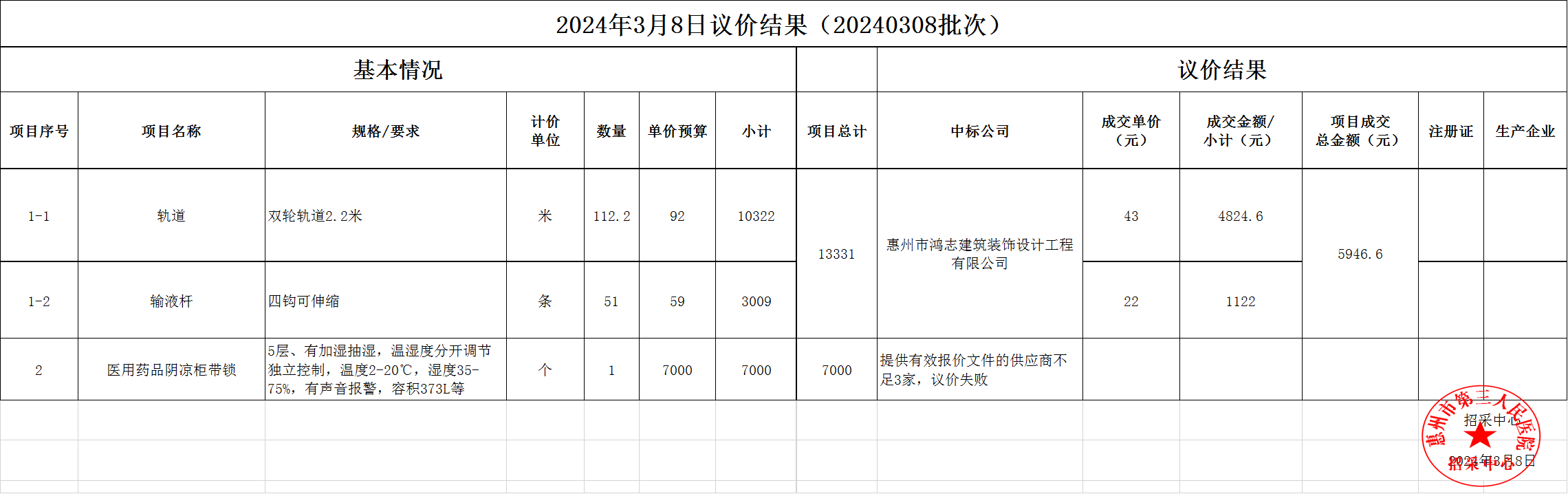 ·上一篇:惠州市第三人民醫(yī)院腹膜透析信息.. ·下一篇:惠州市第三人民醫(yī)院精液檢測采購..