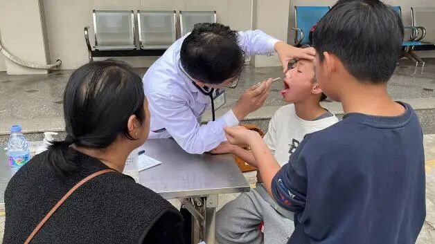 葉國靜副主任醫(yī)師給孩子看診