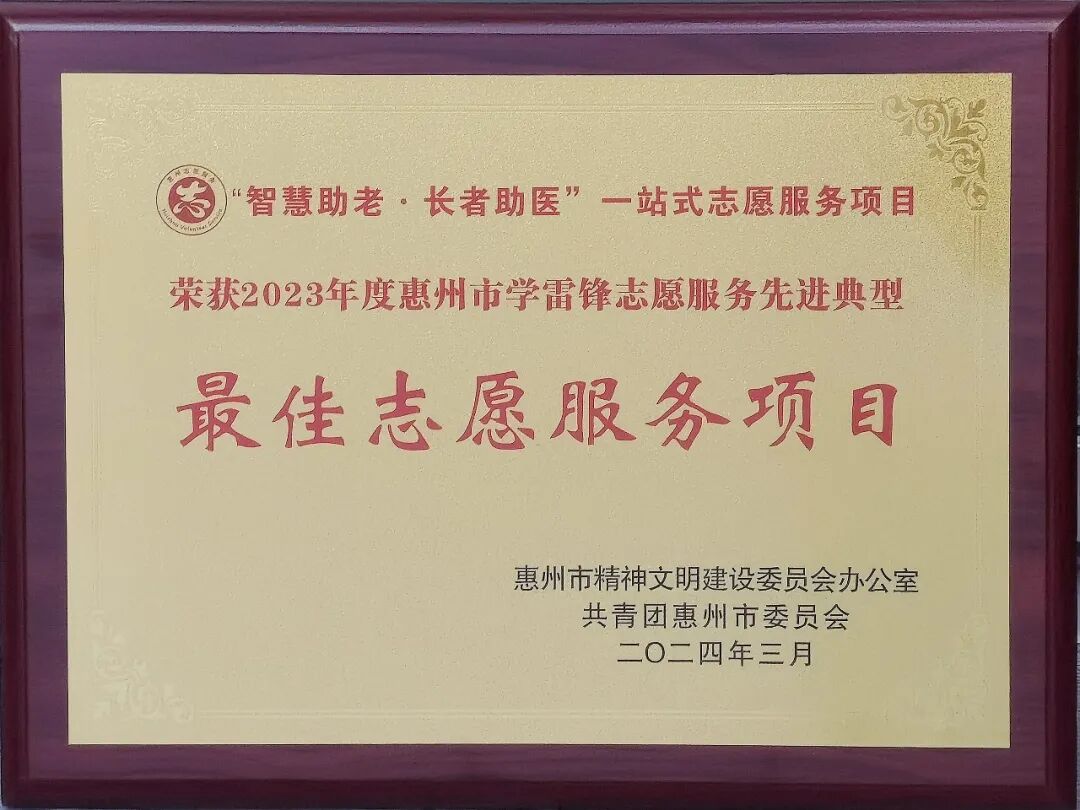 惠州市第三人民醫(yī)院黃海忠、廖銳被評為2023年度惠州市學雷鋒志愿服務先進典型“最美志愿者”,“智慧助老·長者助醫(yī)”一站式志愿服務項目被評為2023年度惠州市學雷鋒志愿服務先進典型“最佳志愿服務項目”;張曉麗被評為2024年惠州市崗位學雷鋒標兵。