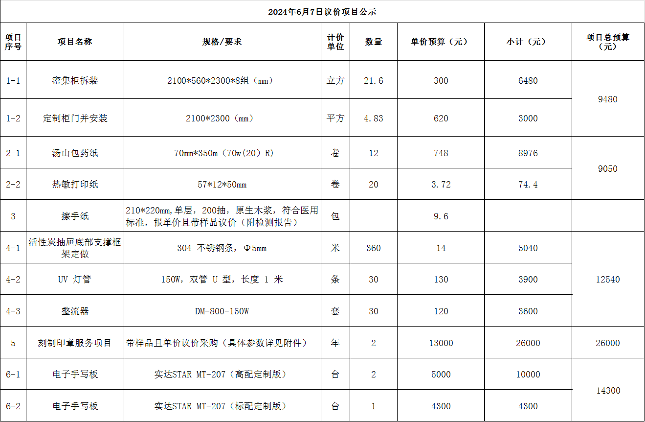 一、項(xiàng)目名稱:20240607議價(jià)項(xiàng)目