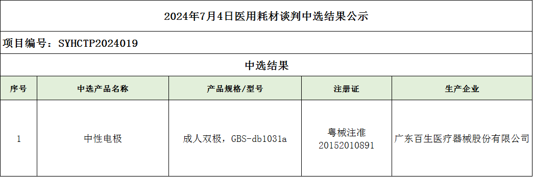 2024年7月4日醫(yī)用耗材談判中選結(jié)果公示