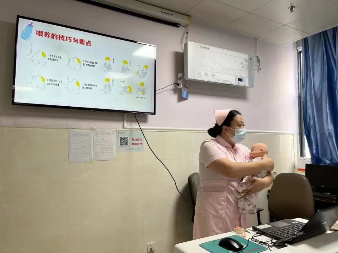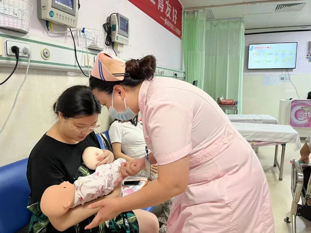 授課結(jié)束后,朱海靜主管護師耐心地為準媽媽們答疑解惑,一對一指導(dǎo)準媽媽們模擬母乳哺乳,演示如何正確拍嗝,讓大家正確掌握母乳喂養(yǎng)的科學(xué)方法,提高母乳喂養(yǎng)的信心。