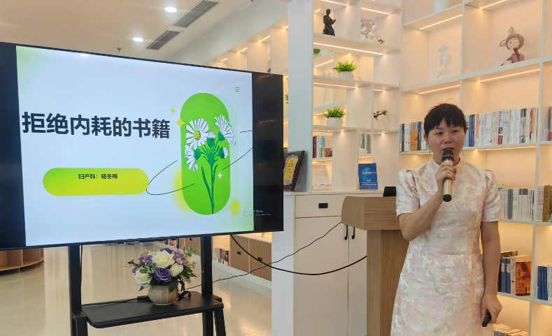 婦科楊冬梅醫(yī)生帶來了《當(dāng)下的力量》的讀書心得。她分享了自己如何通過文本閱讀、在遇到批評(píng)和誤解時(shí),如何跳出故事看問題,從審視自身、改進(jìn)自我出發(fā),處理家庭關(guān)系、工作關(guān)系、醫(yī)患關(guān)系,從而在生活和工作中做到和諧平衡、不內(nèi)耗。